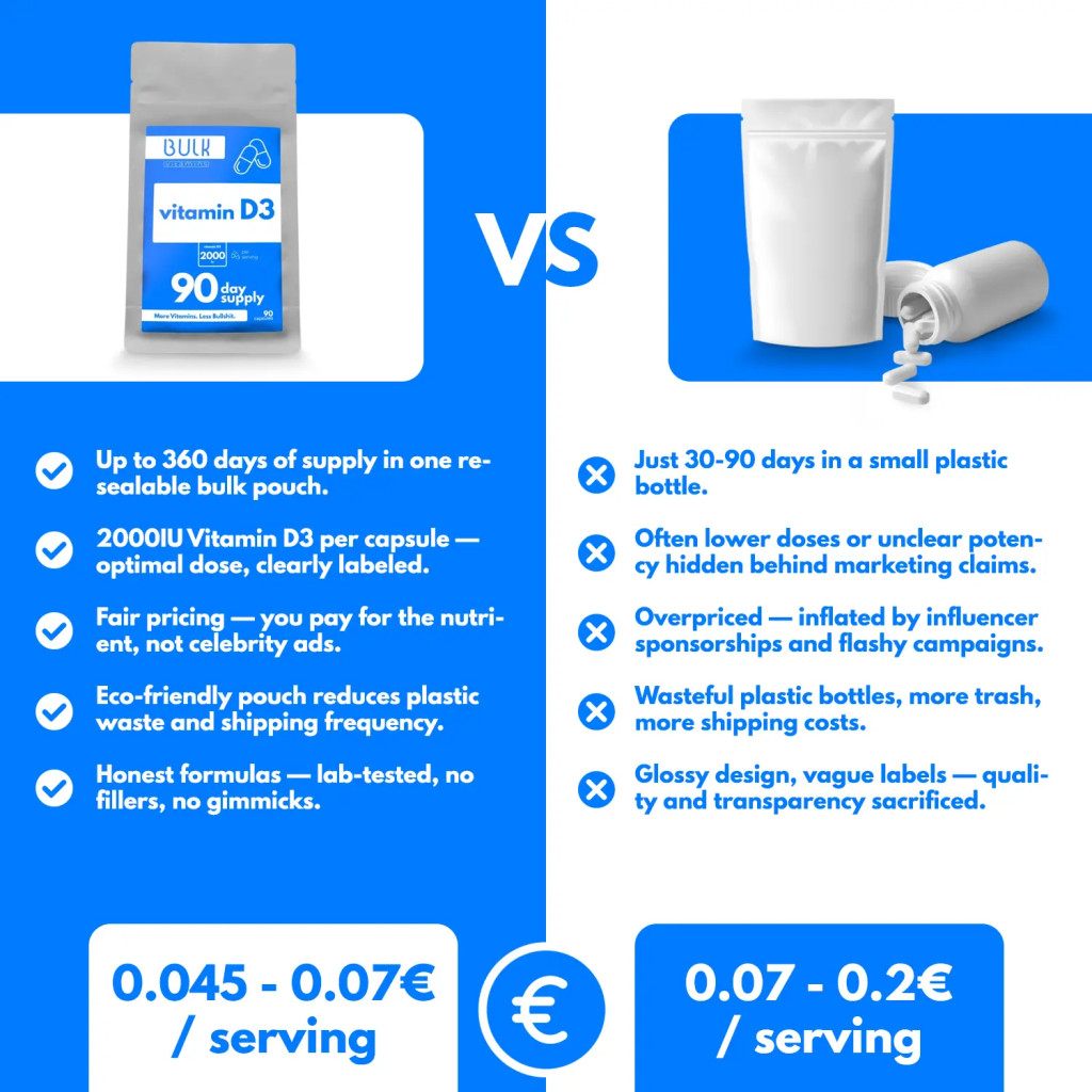 More value, less waste — bulk Vitamin D3 that lasts.