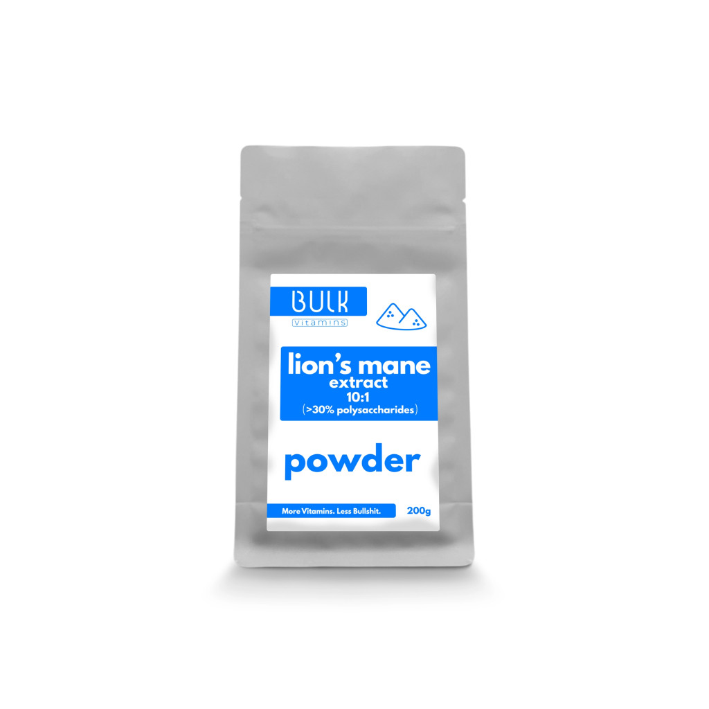 BULKvitamins supplies premium Lion’s Mane (Hericium erinaceus) Mushroom Extract Powder, standardized to >30% polysaccharides with a 10:1 concentration ratio, available in bulk packaging from 100g up to 25kg. Perfect for supplement brands, functional food companies, and contract manufacturers.