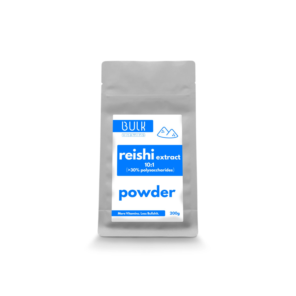 BULKvitamins supplies premium Reishi (Ganoderma lucidum) Mushroom Extract Powder, standardized to >30% polysaccharides with a 10:1 concentration ratio, available in bulk packaging from 100g up to 25kg. Perfect for supplement manufacturers, private label projects, and contract formulators.