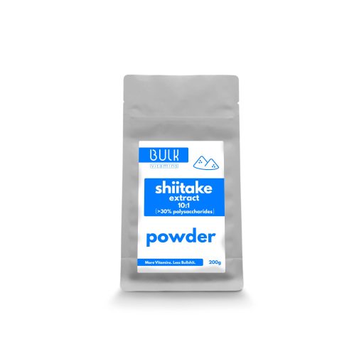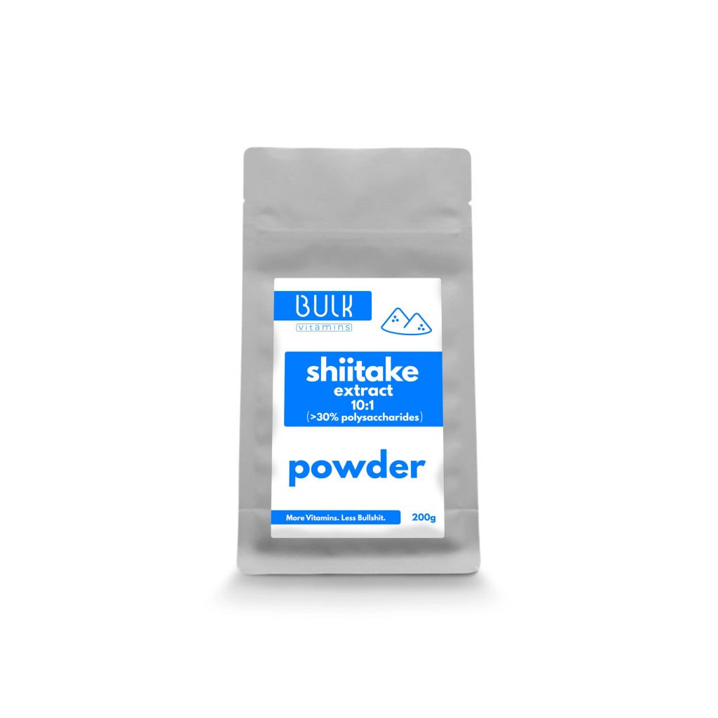 BULKvitamins supplies premium Shiitake (Lentinula edodes) Mushroom Extract Powder, standardized to >30% polysaccharides with a 10:1 concentration ratio, available in bulk packaging from 100g up to 25kg. Designed for supplement brands, functional food producers, and contract manufacturers.